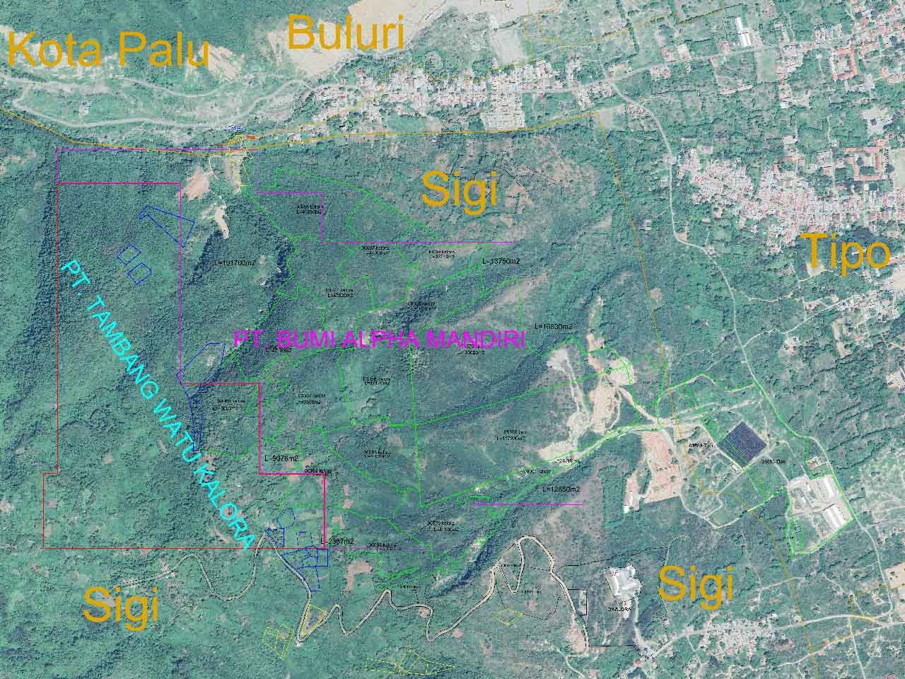 Lokasi konsesi dua perusahaan tersebut ada di Desa Kalora, Kecamatan Kinovaro, Kabupaten Sigi, tepat di atas Kelurahan Tipo.